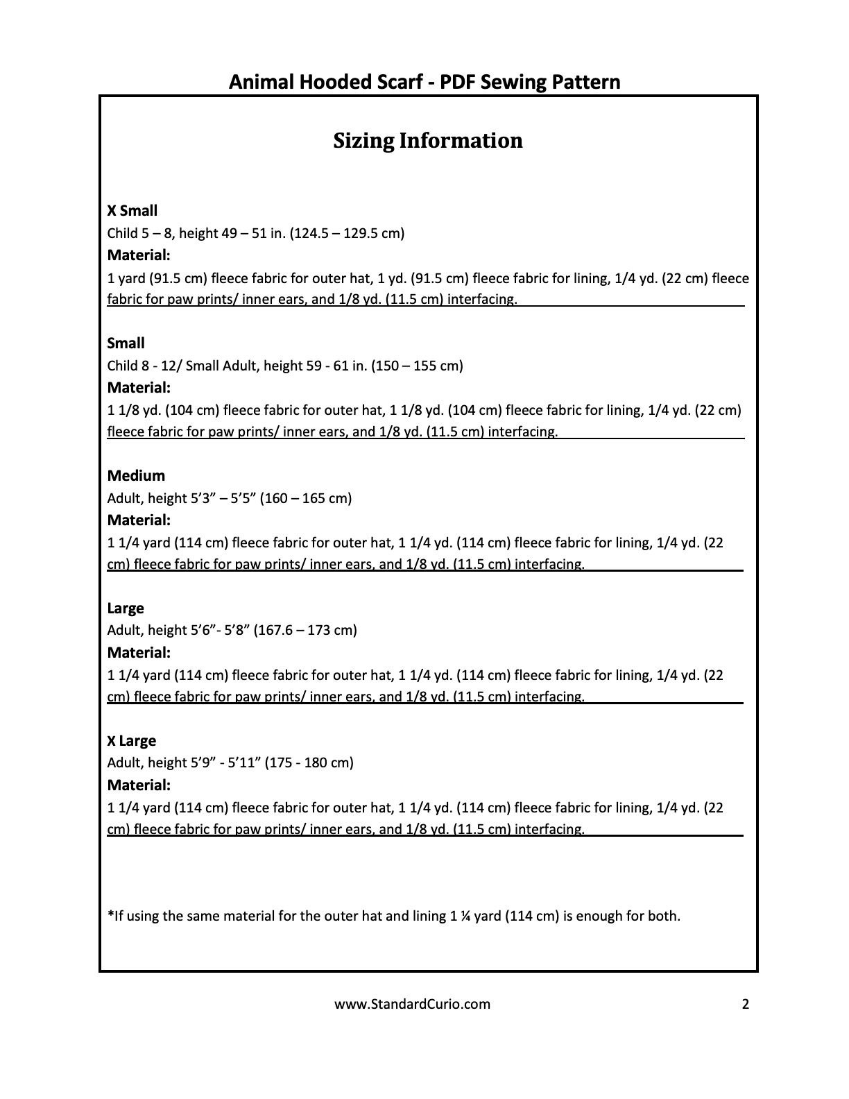 Pdf Animal Hooded Scarf Sewing Pattern 5t Adult